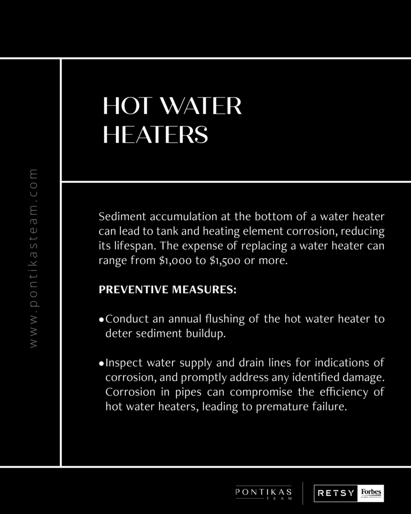 - Plumbing Check: A quick walk around every three months will help catch the earliest signs of plumbing issues. Set up smart devices with leak detectors in areas where water is likely to pool, such as under bathroom or kitchen sinks and in the basement. To keep drains clog-free, pour a cup of white distilled vinegar down them a couple of times a month. Let the vinegar sit for 30 to 45 minutes, then flush with cold water. When deep-cleaning the kitchen drains, don’t forget the garbage disposal. Disconnect the unit’s power, throw on a pair of rubber gloves and wipe down the unit with cleanser until debris is removed.