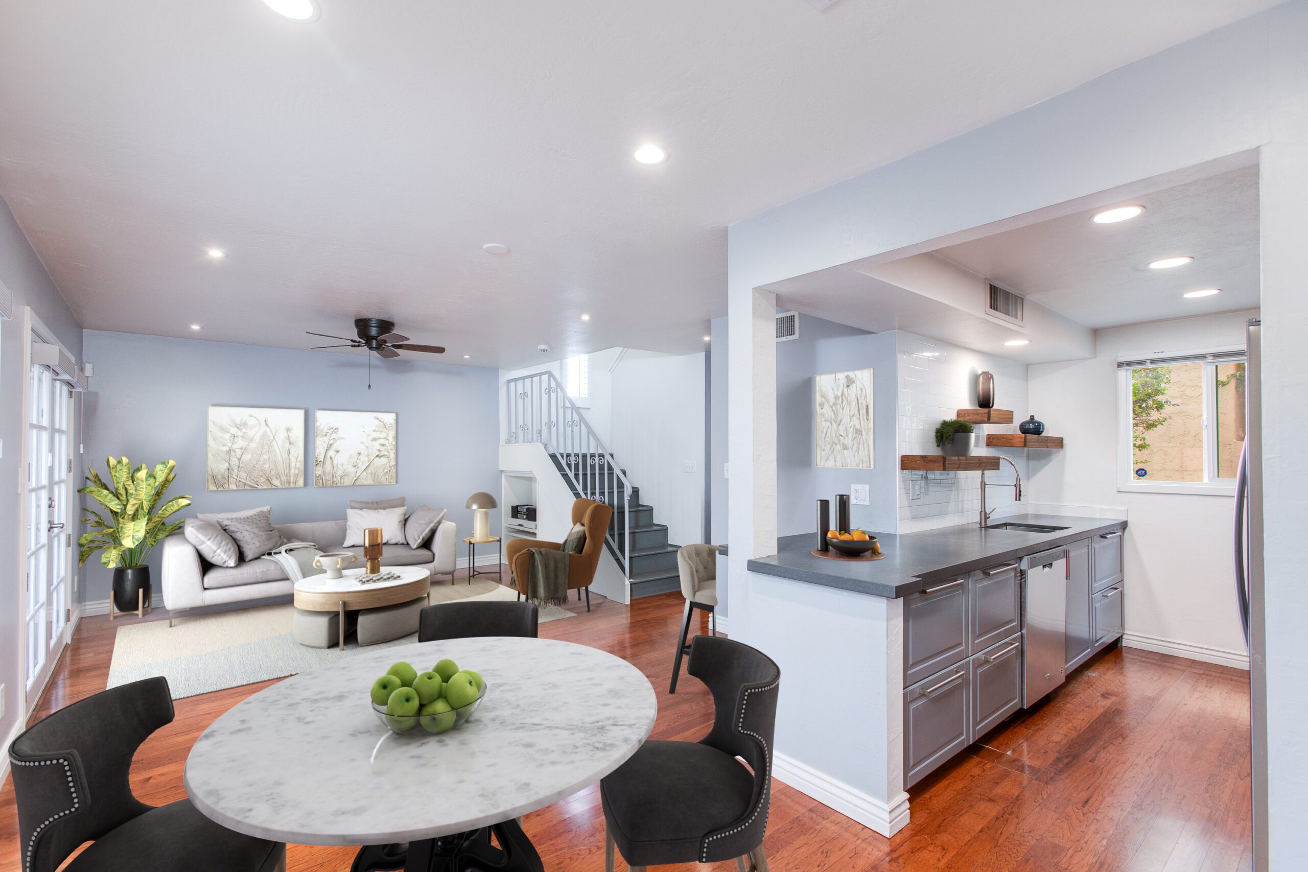 Discover this rare end-unit townhouse in the desirable Sarkis Manor community! Offering 2 bedrooms, 1.5 bathrooms, and 2 covered parking spaces, this home combines charm with convenience.