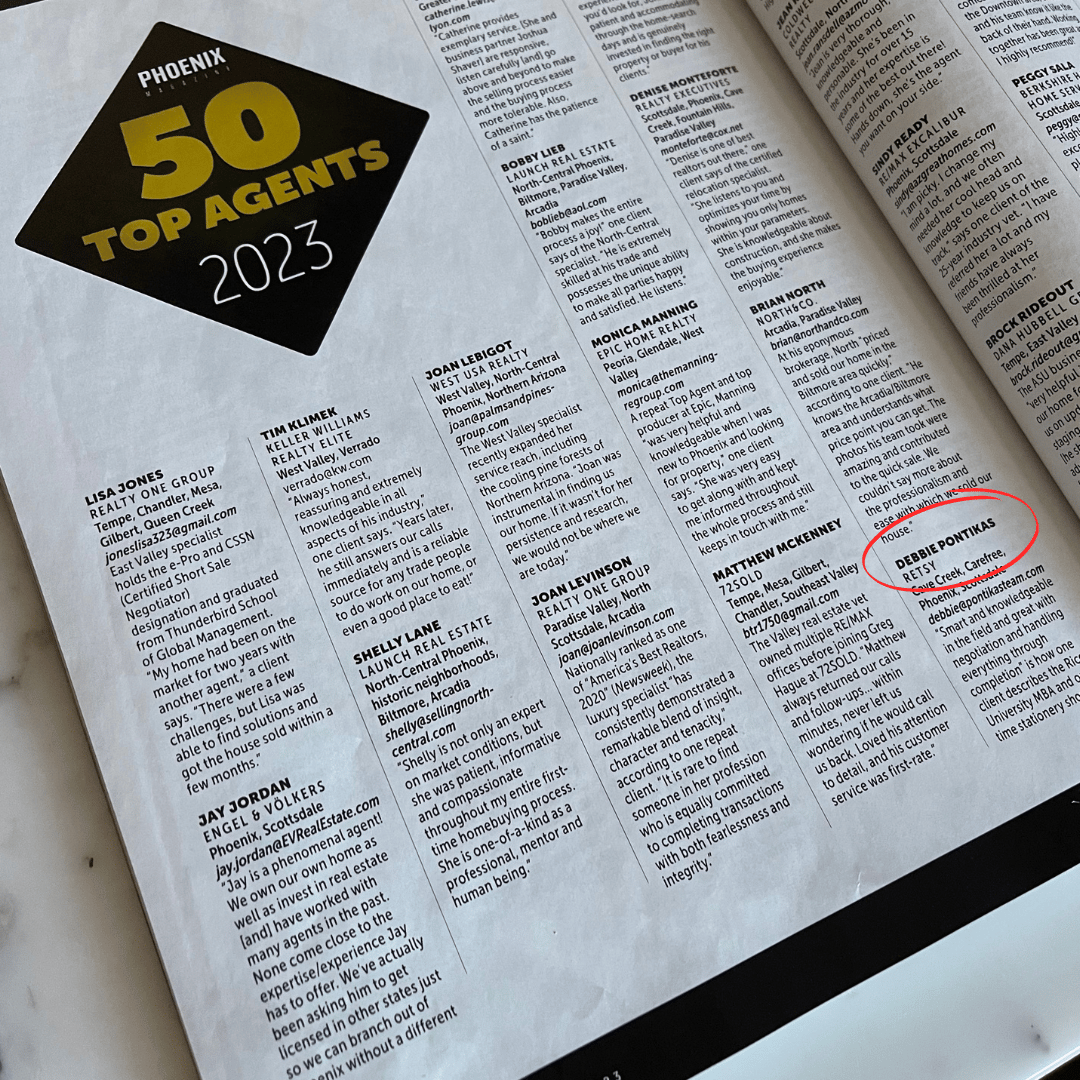 It is with a grateful heart that I am excited to announce that I have been named in Phoenix Magazine’s list of Top 50 Agents for the third year in a row, as well as being named a Top Producer in the valley.