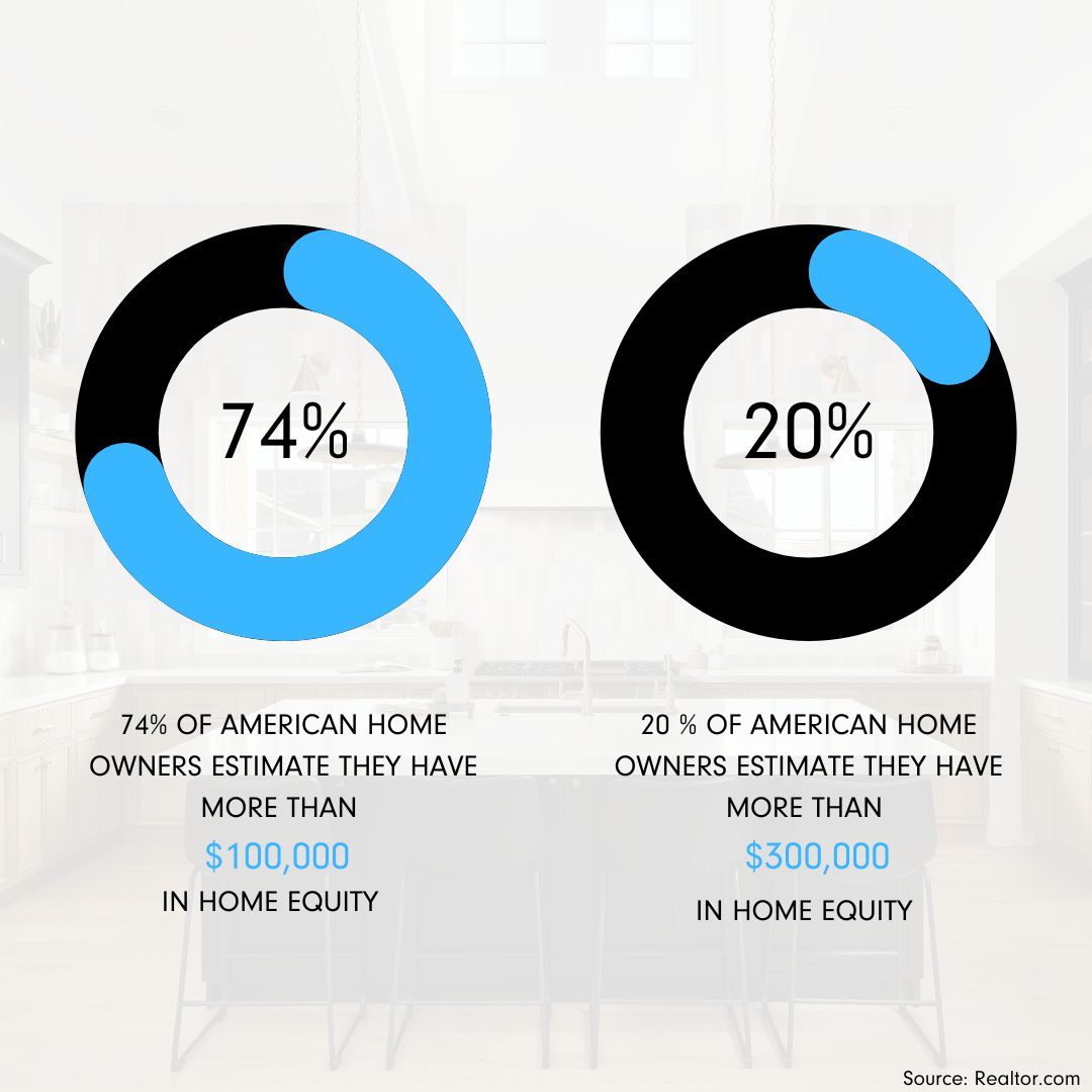 According to Realtor.com, 74% of Americans estimate that have more than $100,000 in home equity. This equity can be leveraged as your downpayment closing costs for your next home.